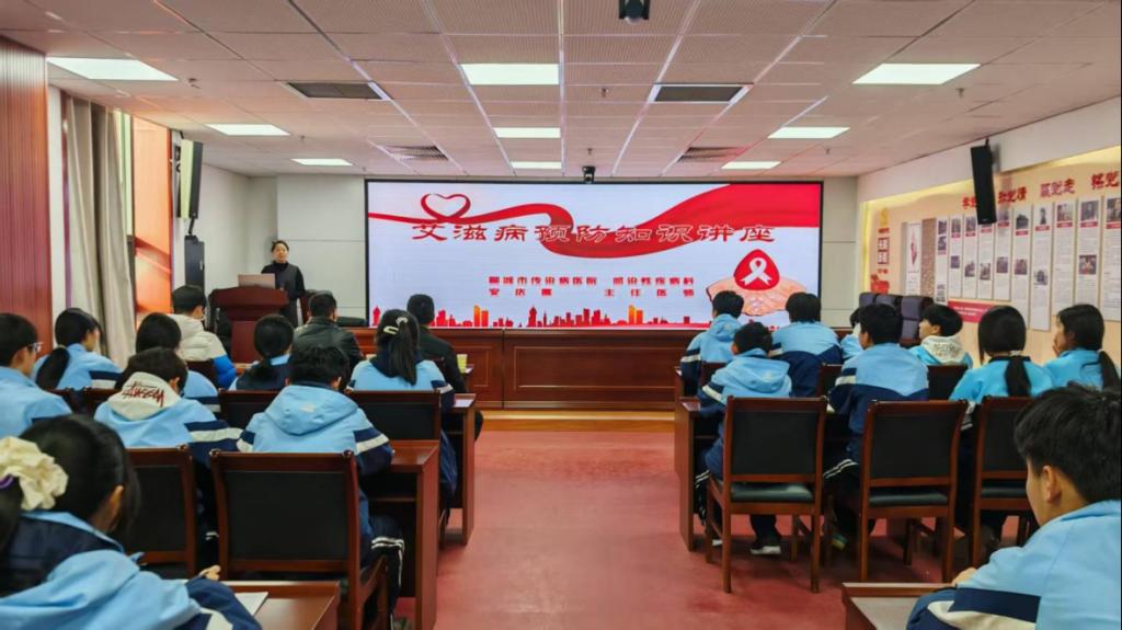 11月26日下午,我校与聊城市传染病医院联合举办艾滋病预防知识讲座。会议由学校团委负责人主持,聊城市传染病医院专家安庆震担任主讲,医院团委书记翟帅出席,商贸系团总支学生参加讲座。此次讲座旨在增强学生对艾滋病的科学认知,提升预防意识。